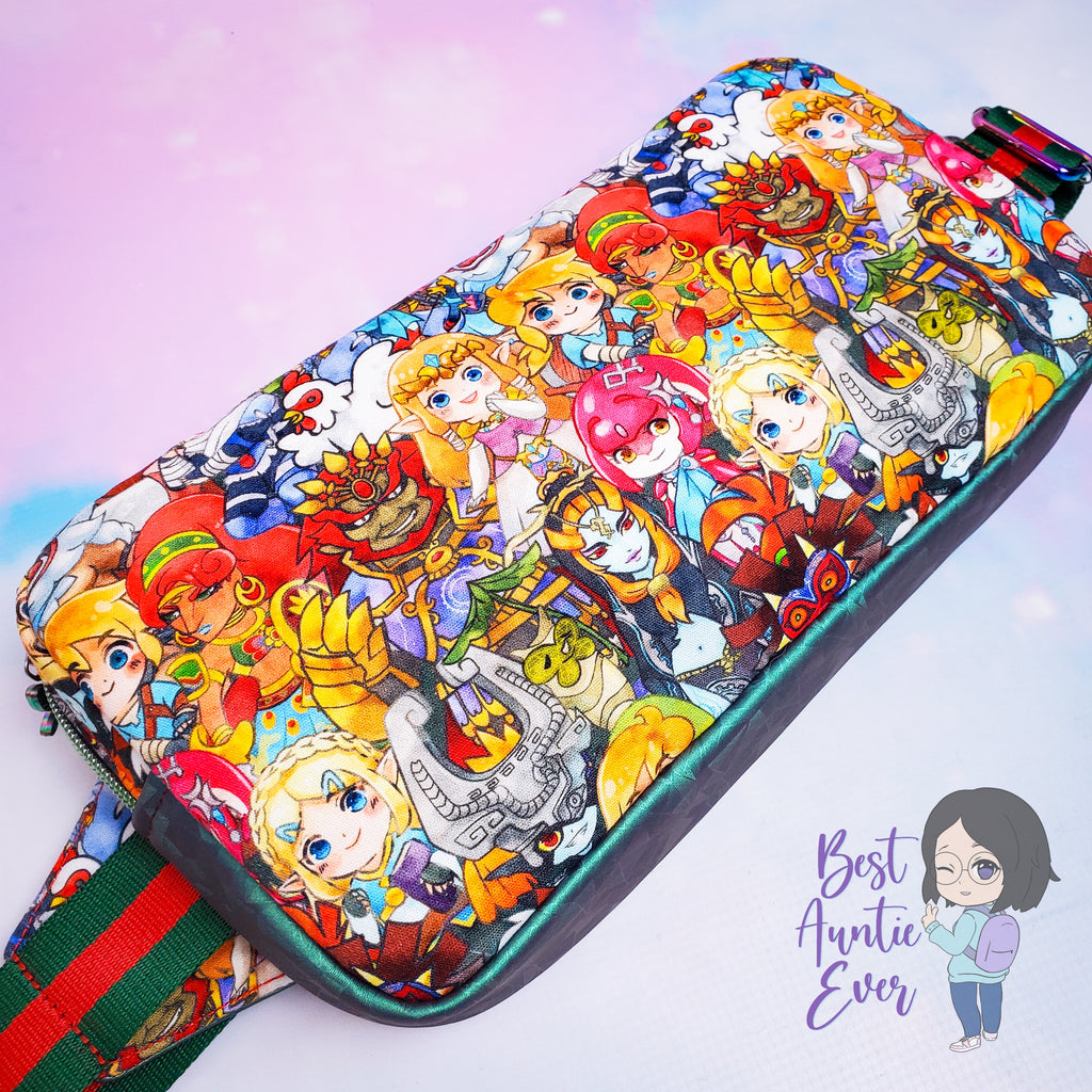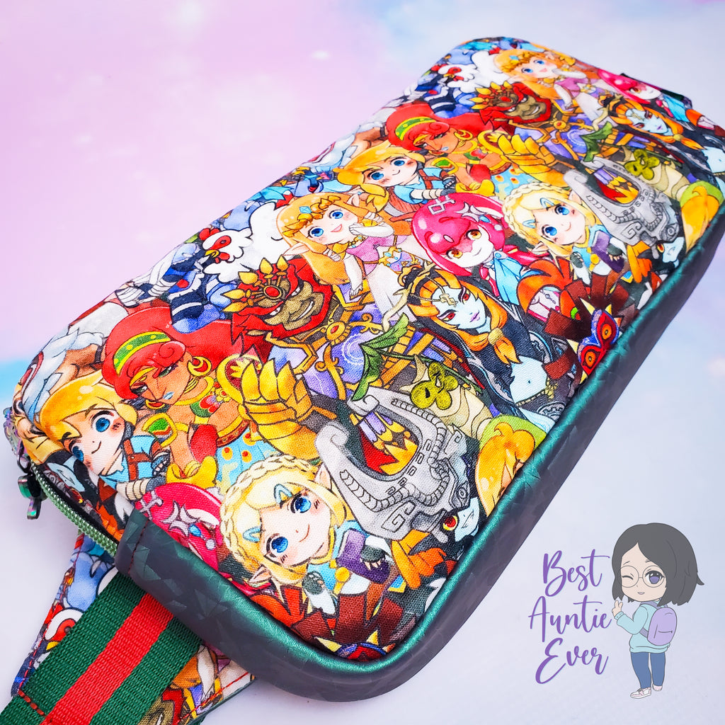 Your new console is bigger, so our new sling bag is now larger and wider to accommodate your gaming needs! Large exterior slip pocket to quickly slide your phone or console into, when you are on the go. This bag is large enough to bring along all the essentials you need, and includes an interior slip pocket. Accented in vinyl, with a water resistant lining for your active lifestyle. Crossbody strap is adjustable. Yes - it does fit your larger Switch 2!