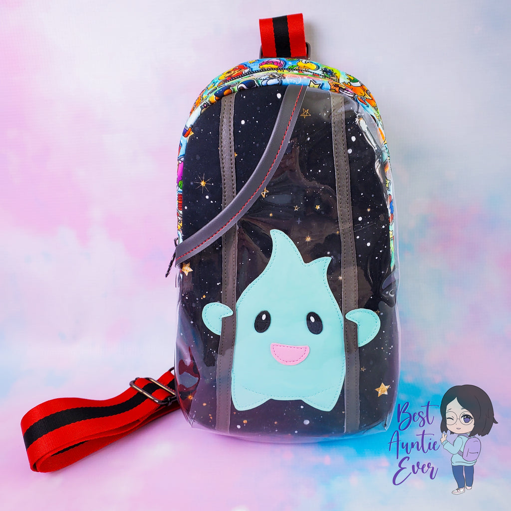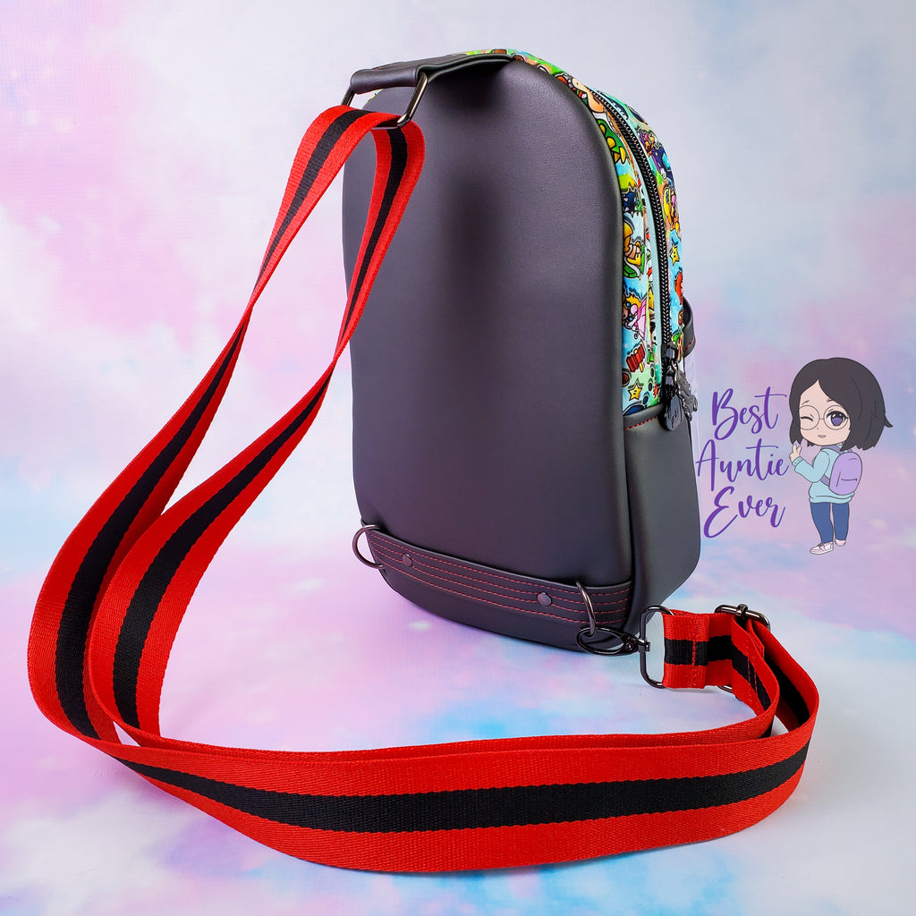 Everyone's favorite spirit animal. Custom vinyl appliqued image. Interior slip pocket. Exterior slip pocket to quickly pop in your phone. Adjustable strap.